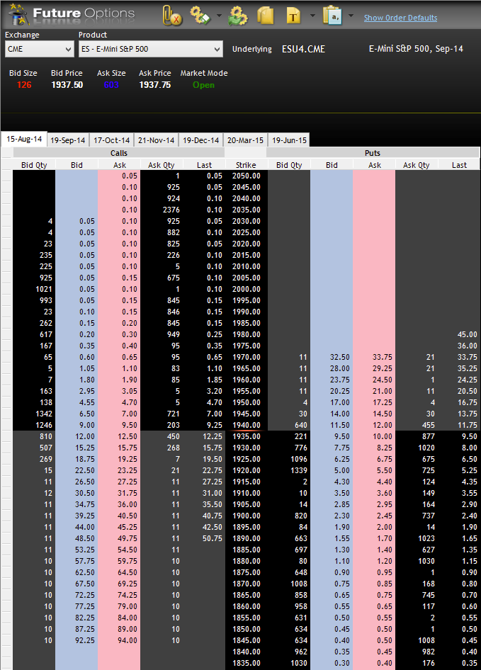 Options on Futures are available through the R Trader platform, and can be viewed and traded through the Options Board within R Trader. This allows trades not only the opportunity to look at the standard Futures markets but the Options on Futures markets as well.